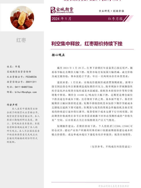 【宝城期货】【20240130】红枣月报:利空集中释放,红枣期价持续下挫-16页 行业研究