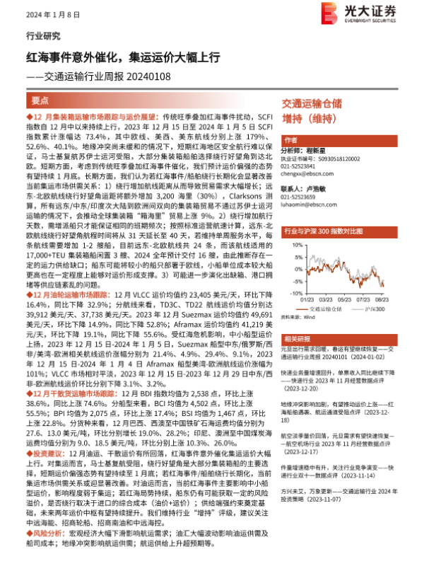 【光大证券】【20240108】红海事件意外催化,集运运价大幅上行-18页 行业研究