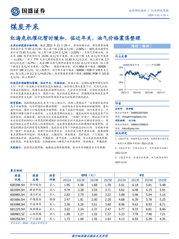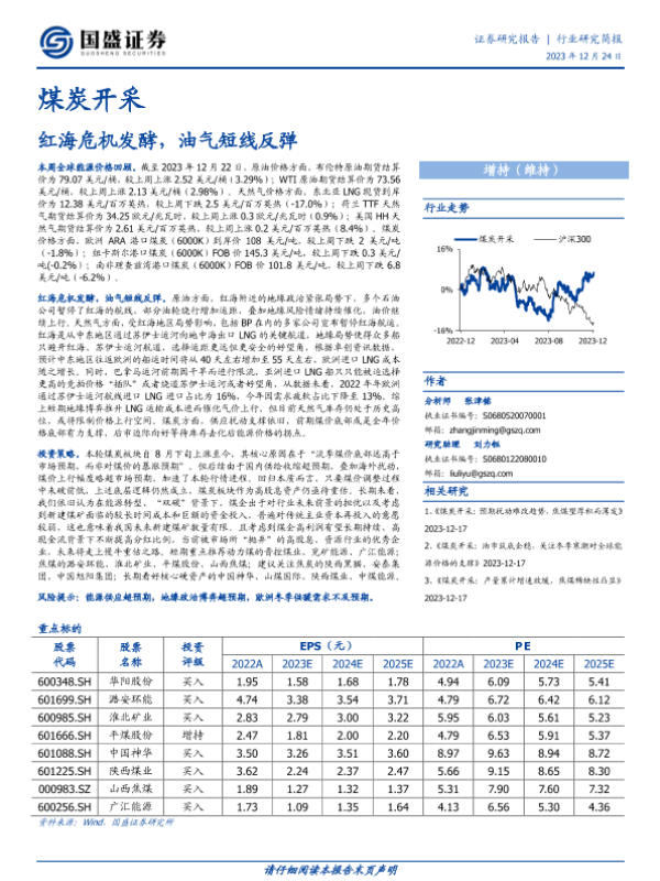 【国盛证券】【20231224】20231224-国盛证券-煤炭开采行业研究简报:红海危机发酵,油气短线反弹-13页 行业研究