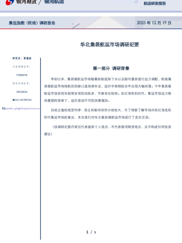 【银河期货】【2025】集运指数(欧线)调研报告_华北集装航运市场调研纪要-5页 市场调研