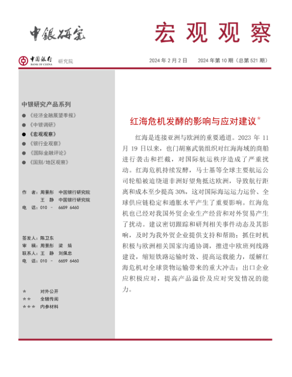 【中国银行研究院】【20240202】红海危机发酵的影响与应对建议-13页 宏观策略
