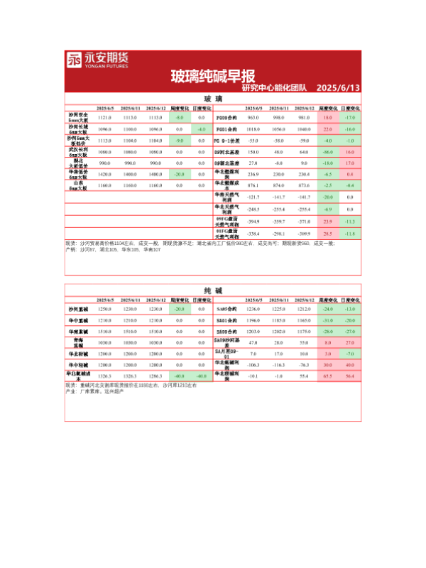 【永安期货】【20250613】玻璃纯碱早报-3页 证券期货研究报告
