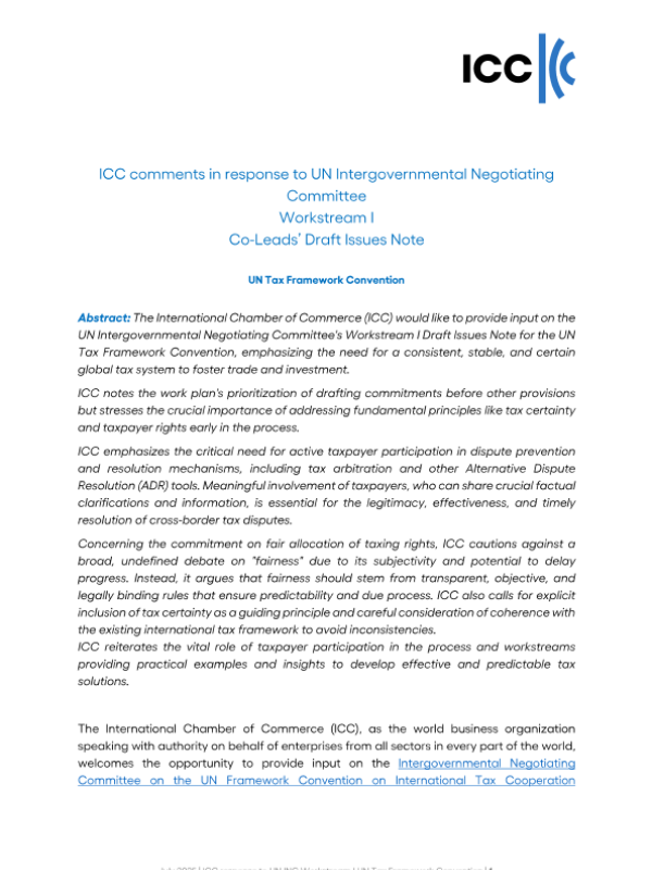 【International Chamber of Commerce(ICC)】【202507】ICC response to UN INC Workstream I UN Tax Framework Convention-6页 政策文件