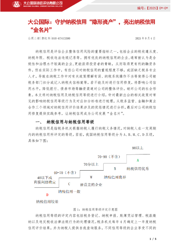 【大公国际资信评估有限公司】【20250904】守护纳税信用“隐形资产”,亮出纳税信用 “金名片”-5页 指南