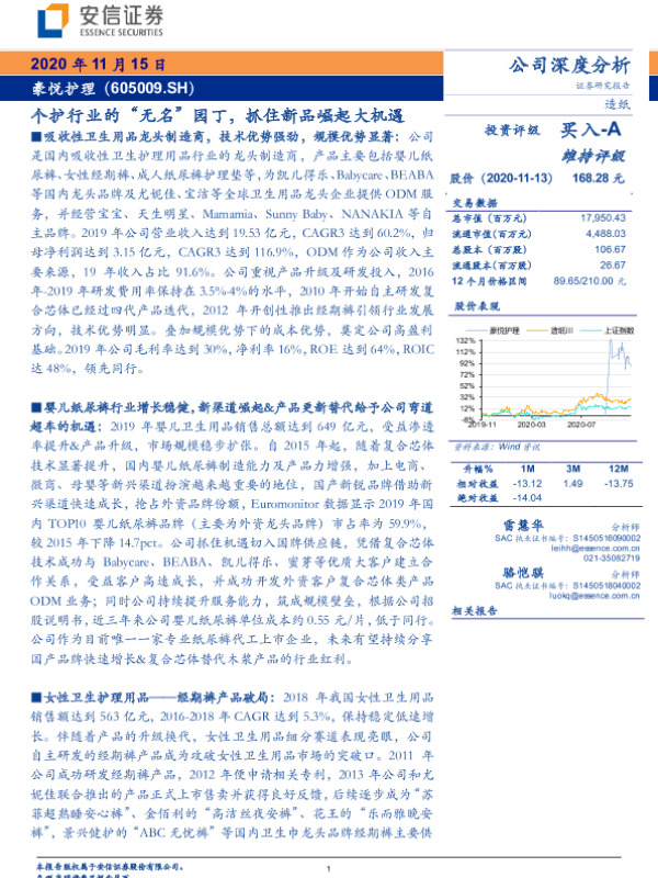 【长城证券】【20201016】20201016-长城证券-豪悦护理-605009.SH-公司深度报告:国产纸尿裤崛起奠基者,把握个护结构性风口-37页 行业研究