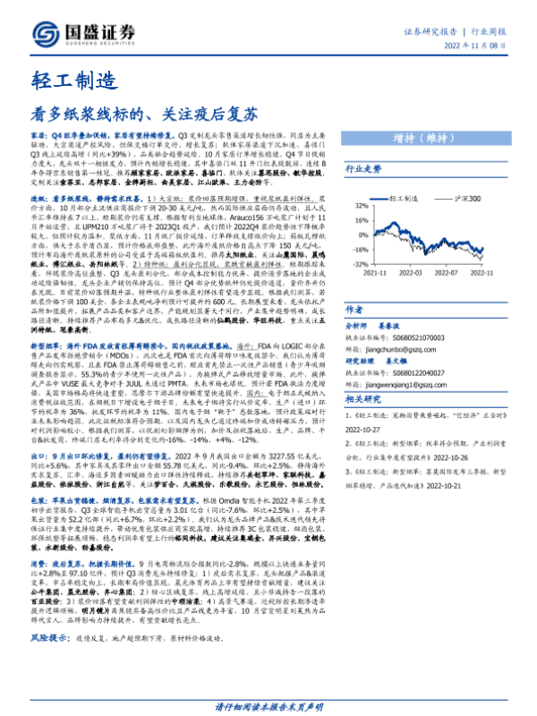 【国盛证券】【20221121】20221121-国盛证券-轻工制造行业周报:本周梳理RLX&日烟三季报,看多纸浆线、家居-52页 行业研究