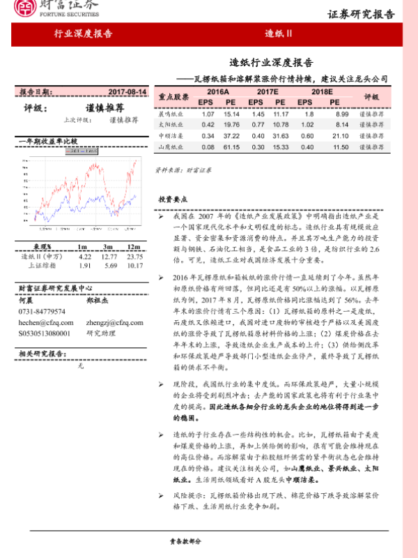 【财富证券】【20170814】2017.08.14-造纸行业深度报告:瓦楞纸箱和溶解浆涨价行情持续,建议关注龙头公司-20页 行业研究