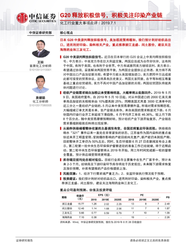 【中信证券】【20190701】G20释放积极信号,积极关注印染产业链-2页 行业研究
