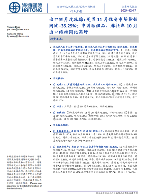 【海通国际】【20241229】2024年12月29日更新-【海通国际】其他专用机械行业出口链月度跟踪-12页 行业研究
