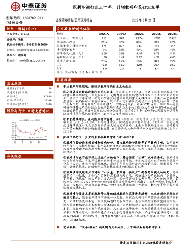 【中泰证券】【20220626】深耕印染行业三十年,引领数码印花行业变革-31页 行业研究