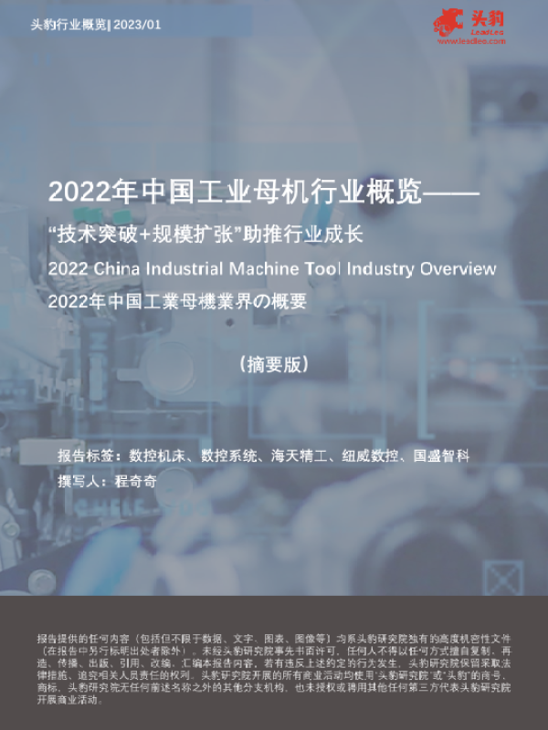 【头豹研究院】【202301】2022年中国工业母机行业概览——“技术突破+规模扩张”助推行业成长-8页 行业研究