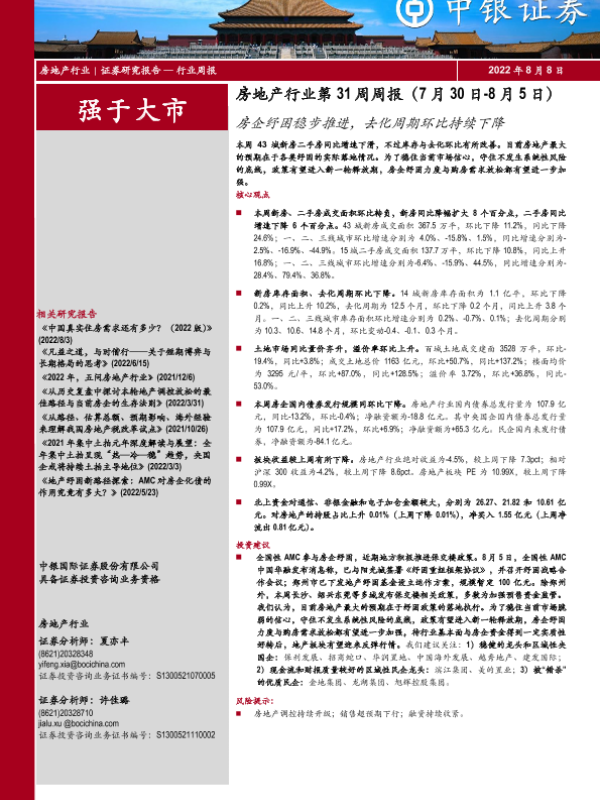 【中银证券】【20220808】房地产行业第31周周报:房企纾困稳步推进,去化周期环比持续下降-31页 行业研究