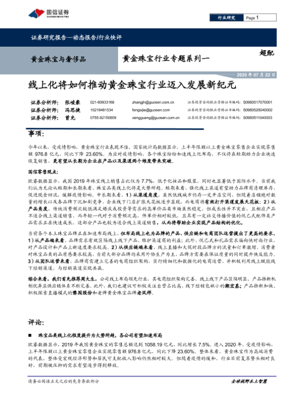 【国信证券】【20200722】线上化将如何推动黄金珠宝行业迈入发展新纪元-11页 行业研究