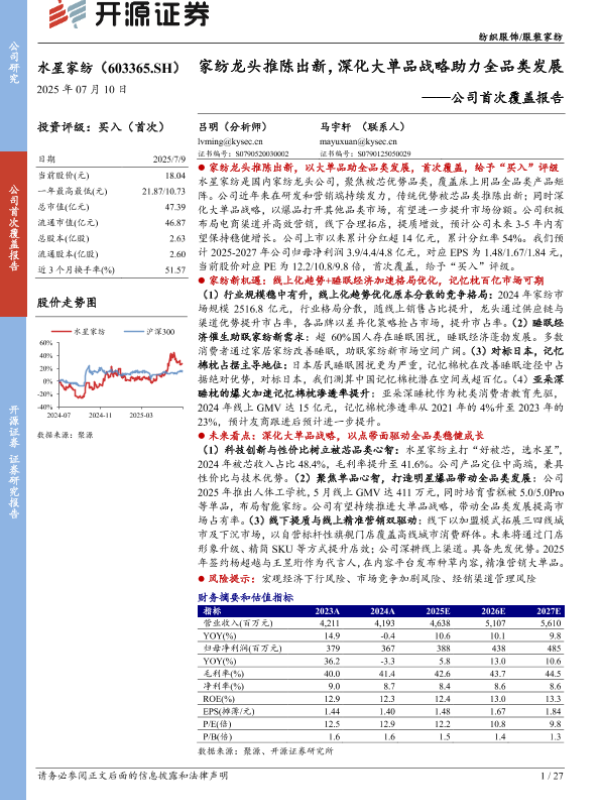【开源证券】【20250710】水星家纺-603365.SH-公司首次覆盖报告:家纺龙头推陈出新,深化大单品战略助力全品类发展-27页 公司研究