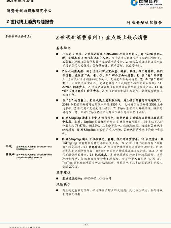 【国金证券】【20210420】Z世代新消费系列1:盘点线上娱乐消费-22页 行业研究