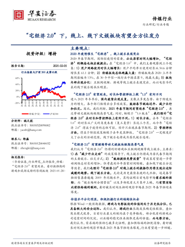 【华安证券】【20210205】“宅经济2.0”下,线上、线下文娱板块有望全方位发力-25页 行业研究