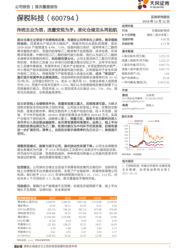 【天风证券】【20191111】传统主业为盾,流量变现为矛,液化仓储龙头再起航-25页 行业研究