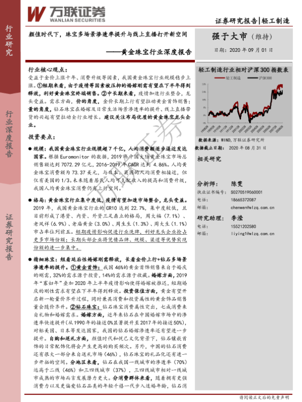 【万联证券】【20200901】20200901-万联证券-黄金珠宝行业深度报告:颜值时代下,珠宝多场景渗透率提升与线上直播打开新空间-22页 行业研究