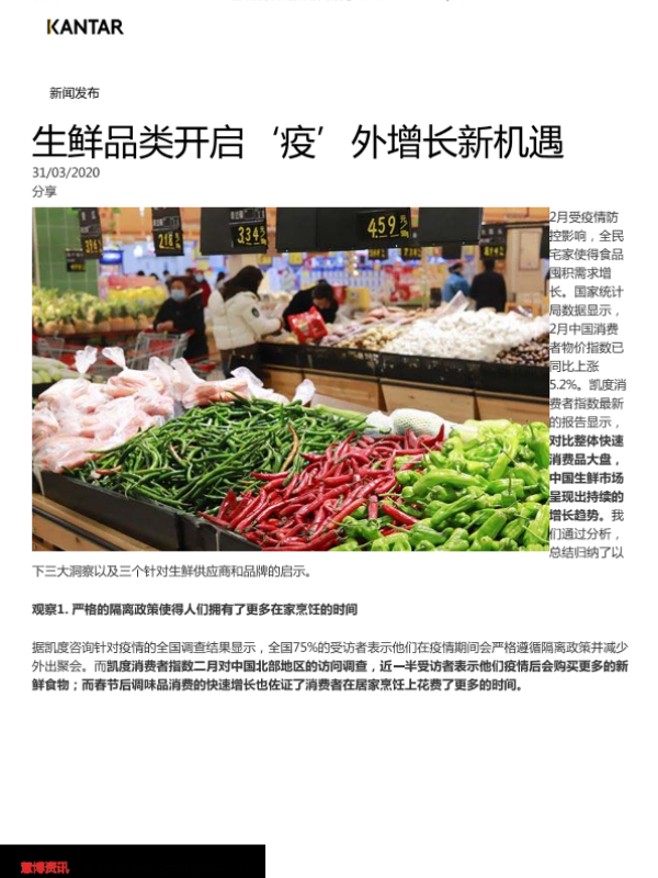 【凯度】【20200331】食品饮料行业:生鲜品类开启“疫”外增长新机遇-5页 市场调研