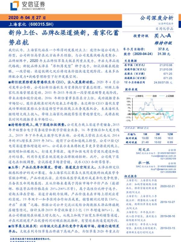 【安信证券】【20200427】新帅上任、品牌&渠道焕新,看家化蓄势启航-26页 行业研究