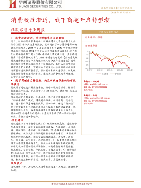 【华西证券】【20240707】社服零售行业周报:消费税改渐近,线下商超开启转型潮-13页 行业研究