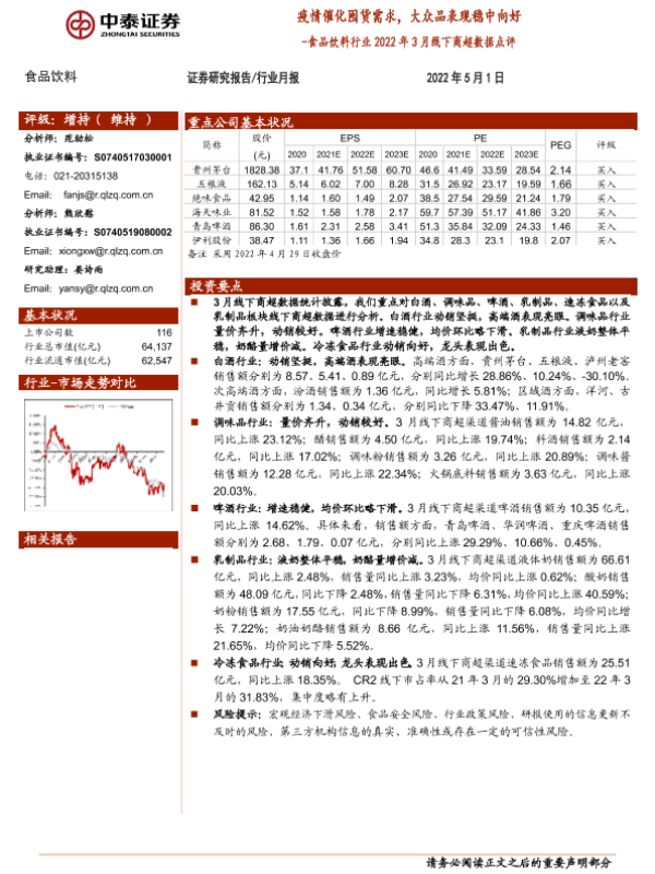 【中泰证券】【20220501】食品饮料行业2022年3月线下商超数据点评:疫情催化囤货需求,大众品表现稳中向好-10页 行业研究