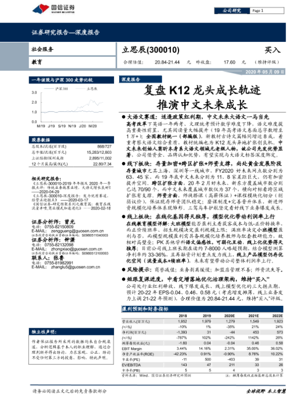 【国信证券】【20200509】复盘K12龙头成长轨迹,推演中文未来成长-41页 行业研究