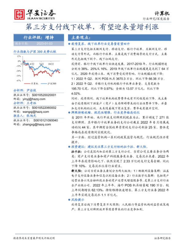 【华安证券】【20230103】计算机行业深度报告:第三方支付线下收单,有望迎来量增利涨-22页 行业研究
