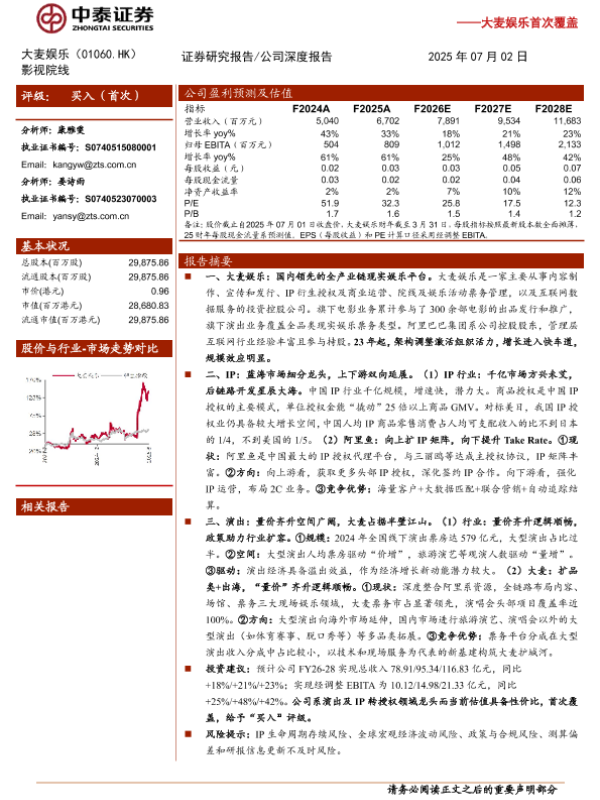 【中泰证券】【20250702】大麦娱乐首次覆盖:“演艺%2bIP”双引擎,重构线下娱乐新基建-23页 证券期货研究报告