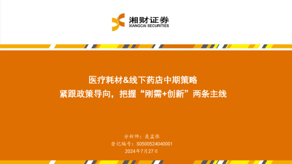 【湘财证券】【20240727】医疗耗材&线下药店中期策略:紧跟政策导向,把握‘刚需+创新’两条主线-25页 行业研究
