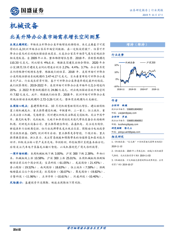 【国盛证券】【20191117】20191117-国盛证券-机械设备行业周报:北美升降办公桌市场需求增长空间测算-11页 行业研究