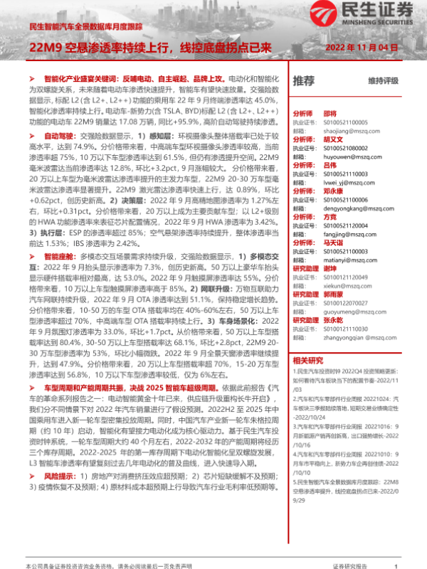 【民生证券】【20221104】民生智能汽车全景数据库月度跟踪:22M9空悬渗透率持续上行,线控底盘拐点已来-17页 行业研究