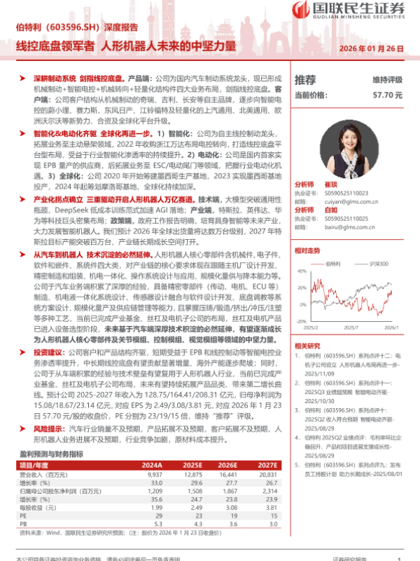 【国联民生证券】【202401】伯特利(603596.SH)深度报告:线控底盘领军者人形机器人未来的中坚力量-50页 证券期货研究报告