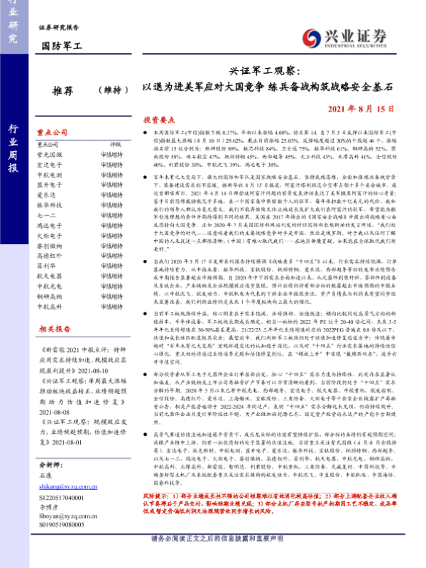 【兴业证券】【20210815】兴证军工观察:以退为进美军应对大国竞争练兵备战构筑战略安全基石-15页 行业研究