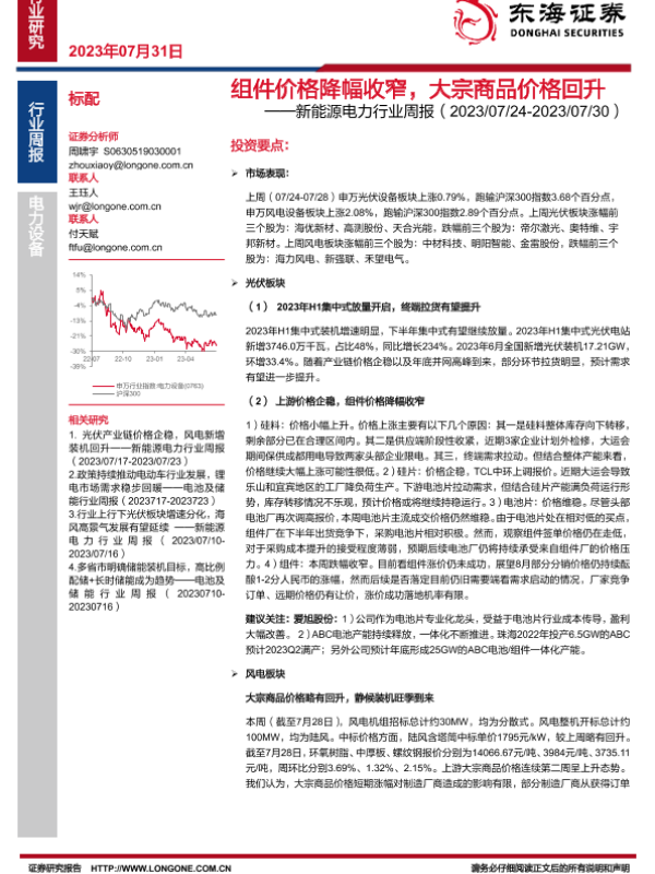 【东海证券】【20230731】组件价格降幅收窄,大宗商品价格回升-16页 行业研究