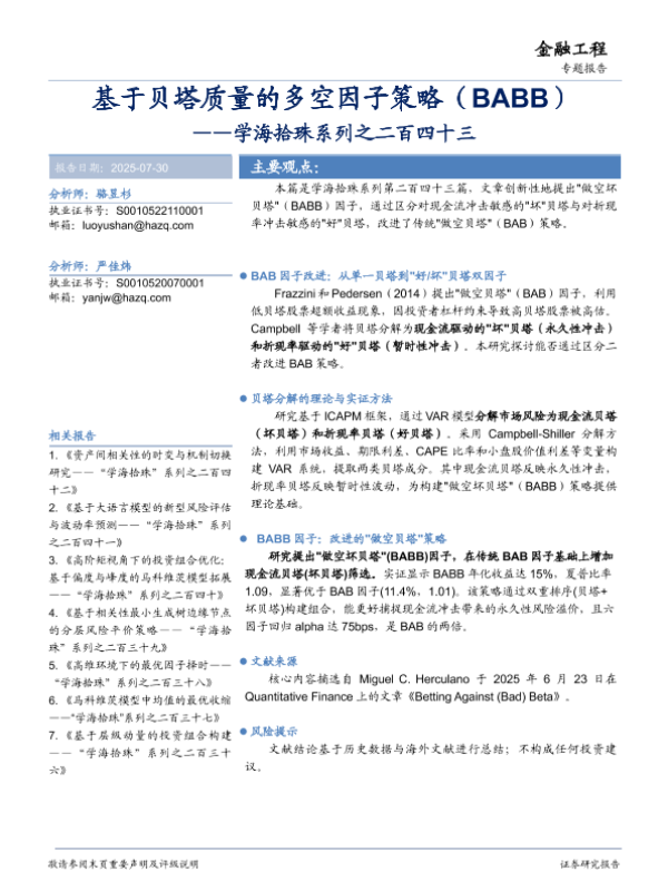 【华安证券】【202507】基于贝塔质量的多空因子策略( BA BB)——学海拾珠系列之二百四十三-16页 证券期货研究报告