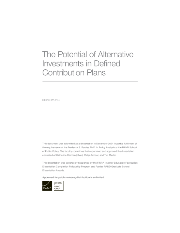 【RAND School of Public Policy】【2024】The Potential of Alternative Investments in Defined Contribution Plans-64页 学术论文