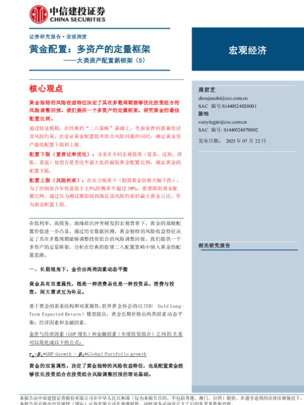 【中信建投证券】【20250722】黄金配置:多资产的定量框架-23页 证券期货研究报告