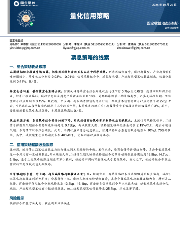 【国金证券】【202310】量化信用策略:票息策略的线索-251026-11页 证券期货研究报告