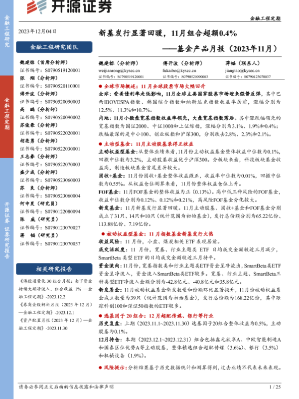 【开源证券】【20231204】基金产品月报(2023年11月):新基发行显著回暖,11月组合超额0.4%-25页 行业研究