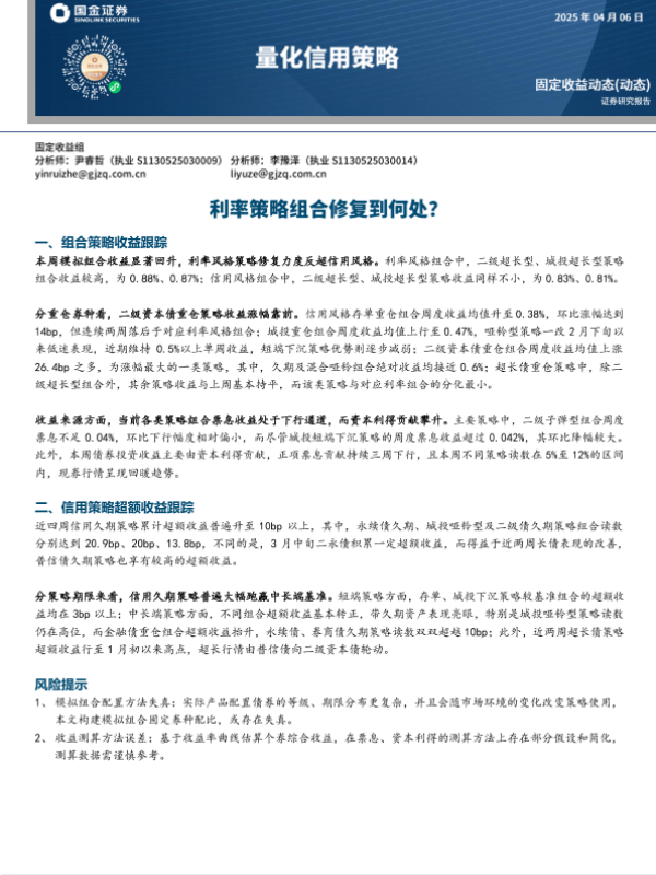 【国金证券】【20250406】量化信用策略:利率策略组合修复到何处?-11页 证券期货研究报告