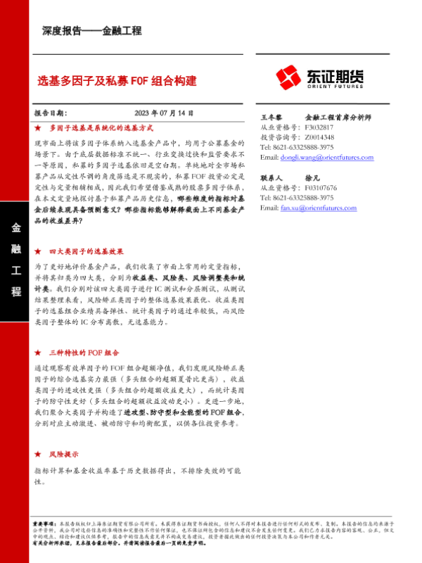 【东证期货】【20230714】选基多因子及私募FOF组合构建-24页 行业研究