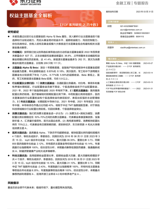 【东方证券】【20230331】《FOF系列研究之六十四》:权益主题基金全解析-24页 行业研究