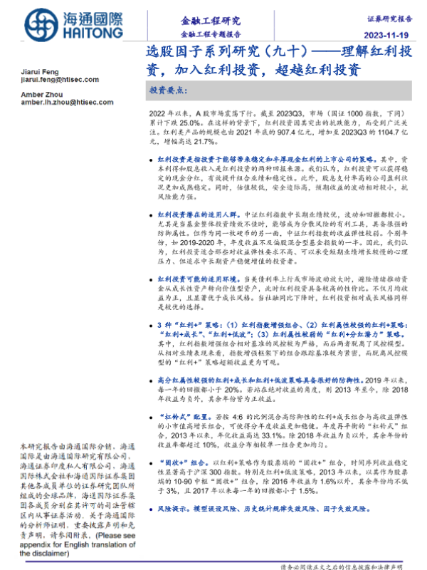 【海通国际】【20231119】选股因子系列研究(九十)——理解红利投资,加入红利投资,超越红利投资-32页 行业研究