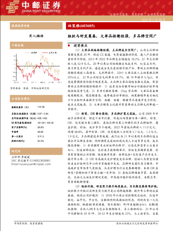 【中邮证券】【20230725】中邮证券-珀莱雅-组织与研发奠基,大单品持续性强,多品牌空间广-46页 行业研究