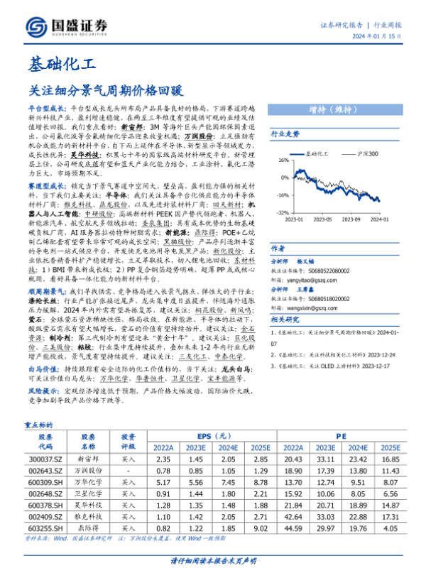 【国盛证券】【20240115】基础化工行业周报:关注细分景气周期价格回暖-11页 行业研究