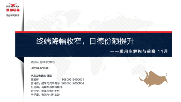 【西部证券】【20191203】乘用车解构与前瞻11月:终端降幅收窄,日德份额提升-22页 行业研究