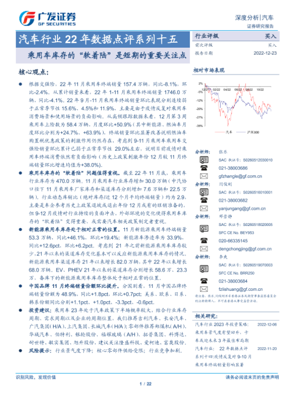 【广发证券】【20221223】汽车行业22年数据点评系列十五:乘用车库存的“软着陆”是短期的重要关注点-22页 行业研究