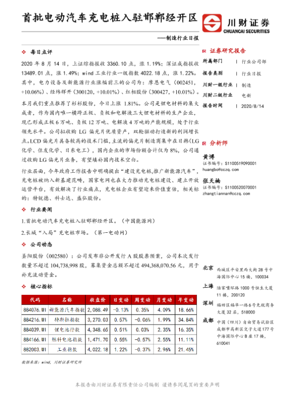 【川财证券】【20200814】制造行业日报:首批电动汽车充电桩入驻邯郸经开区-3页 证券期货研究报告