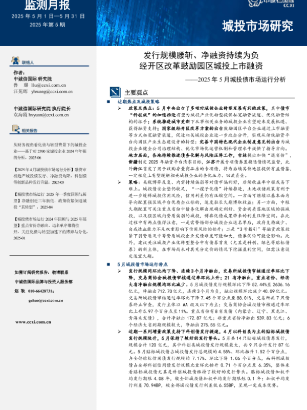 【中诚信国际】【202505】发行规模腰斩净融持续为负,经开区改革鼓励园区城投上市融资——2025年5月城投债市场运行分析-17页 行业研究